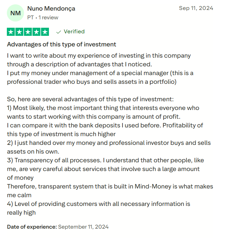 Комиссии прозрачны, скрытые списания отсутствуют. Заявки на вывод подтверждаются клиентом вручную. В Mind Money отзывах подчеркивается стабильность исполнения и корректная работа платёжной службы.